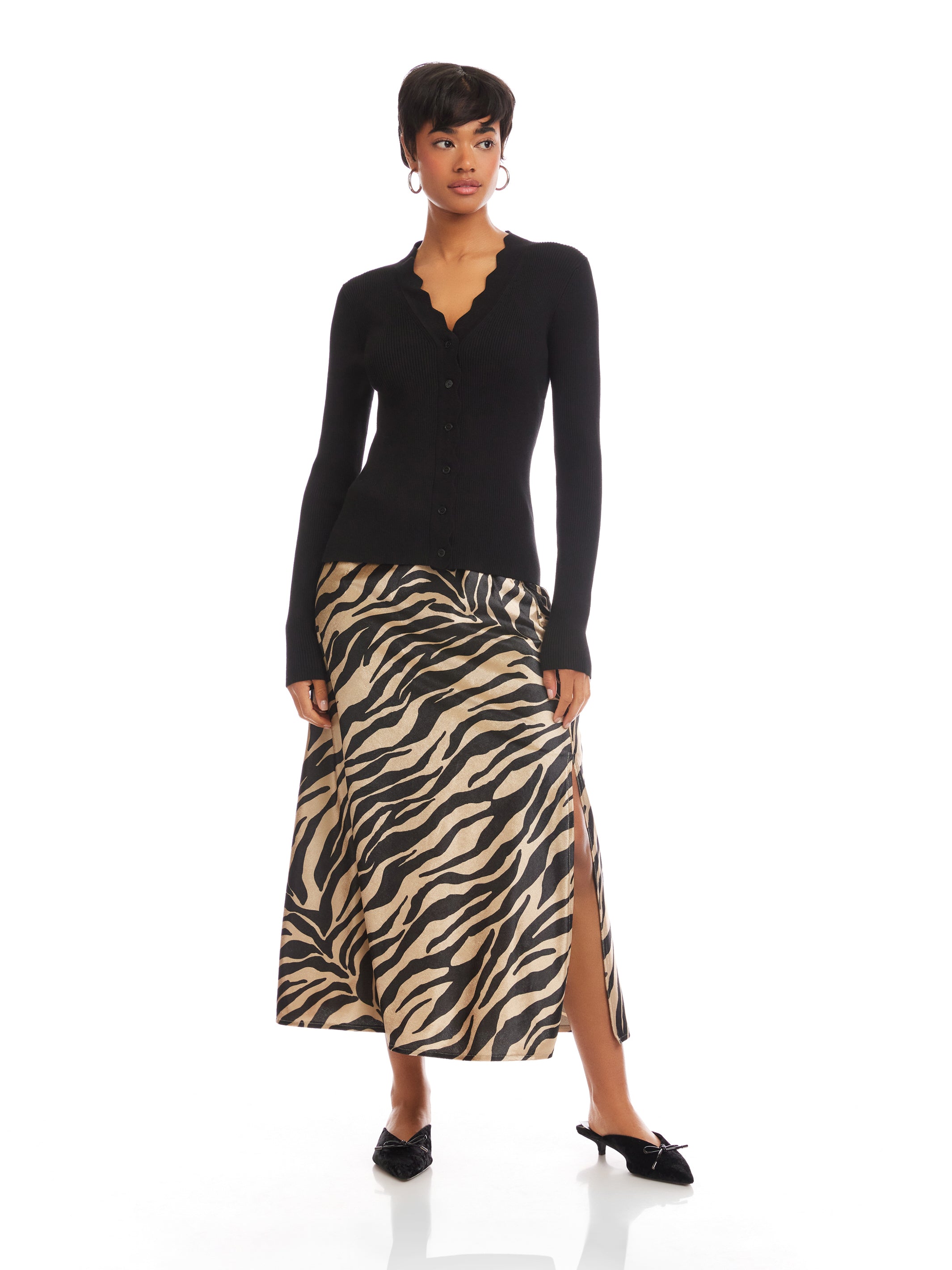 Elyce Front Slit Midi Skirt