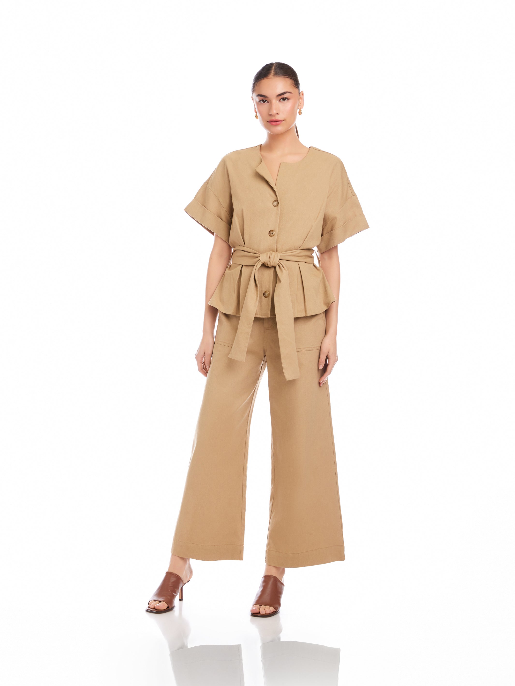 Kai Belted Button-Up Top
